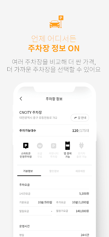 · 위치, 요금, 운영시간, 사진 등 주차장 상세 정보 제공
