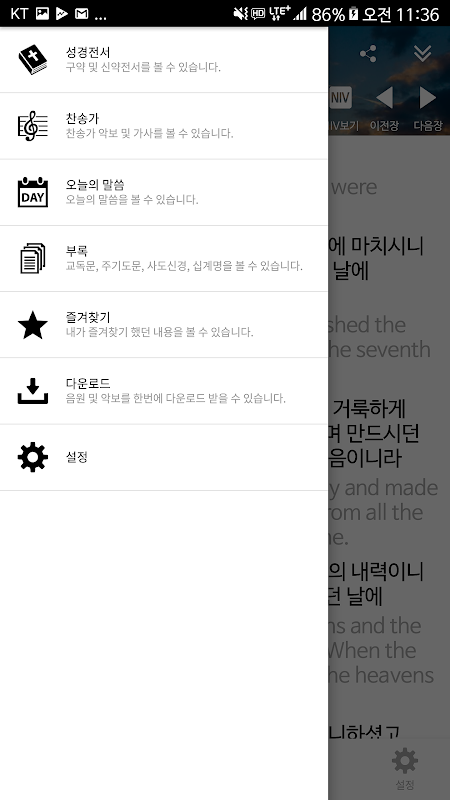 - 매일 매일 말씀을 푸시 알람으로 받으실 수 있습니다.