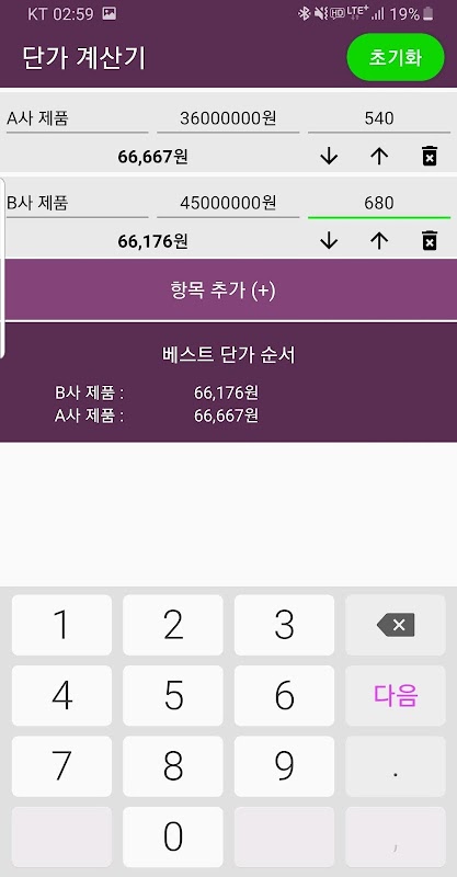 Informações sobre 단가계산기 (제품단가 비교계산기) APK