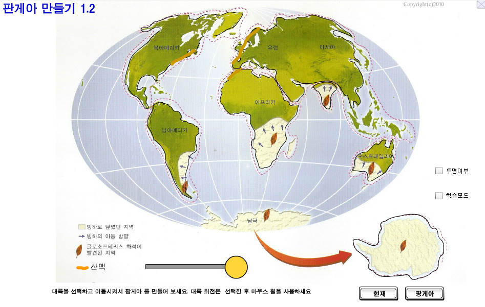 Experimentação virtual para criar Pangea de ponta movendo continentes fatiados