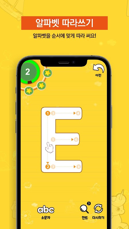 As letras maiúsculas e minúsculas do alfabeto e as quatro palavras correspondentes ao alfabeto aparecem como imagens 3D usando tecnologia AR. As crianças podem aprender inglês clicando na imagem com curiosidade e ouvindo a voz. Ele foi projetado para que as crianças possam ouvir não apenas o alfabeto, mas também palavras em inglês frequentemente encontradas e frases correspondentes na pronúncia de um falante nativo.