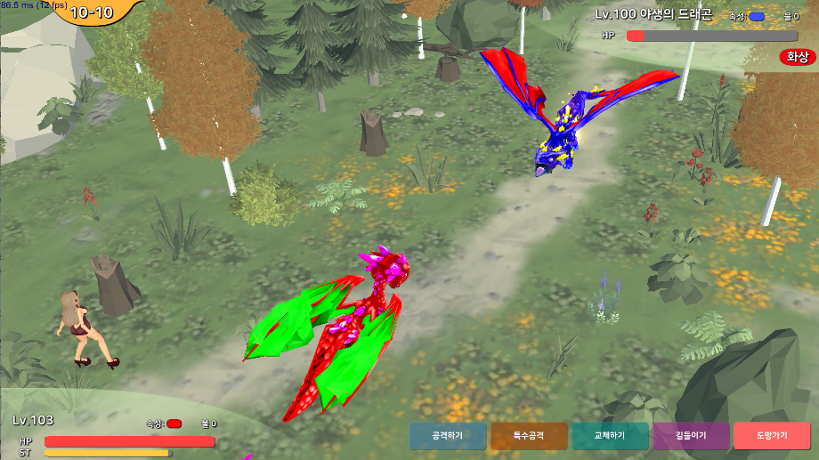 - 숲탐험에서 야생드래곤과 전투를 할 수 있습니다.