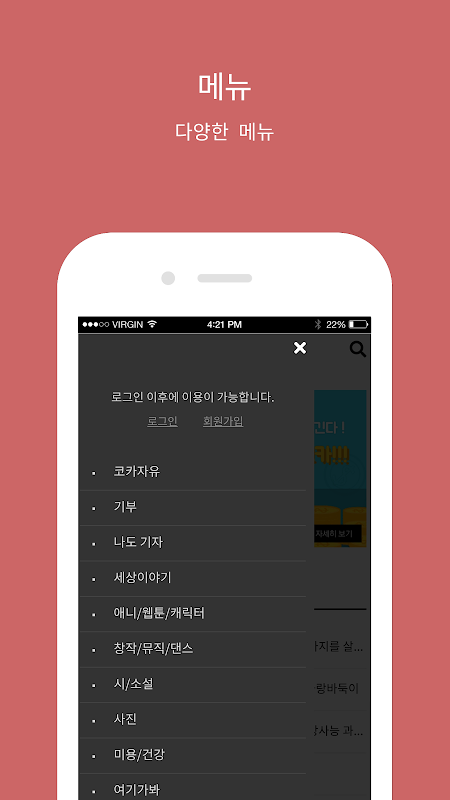 - 레드코카에는 코카자유, 세상이야기, 나도기자, 여기가봐, 웹툰, 등 재미있고, 다양한 콘텐츠를 올리거나 볼 수 있으며, 콘텐츠를 통해서도 1석2조의 수익을 창출할 수 있습니다.