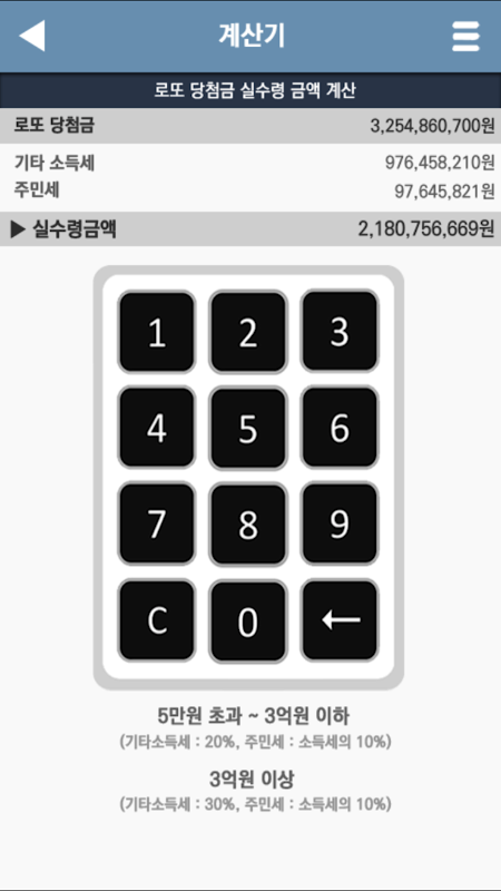 - 로또 당첨금액에 따른 실수령액을 계산해볼 수 있는 기능입니다.
