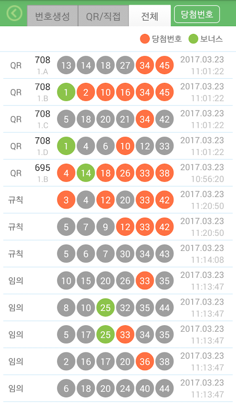 전체, 5주, 10주, 15주 등 다양한 기간, 보너스 포함여부 등 생성규칙을 지정하는 다양한 조건으로 조회할 수 있습니다.