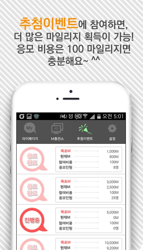 추첨 이벤트를 통해 더 많은 마일리지를 쌓아 보세요~ :D