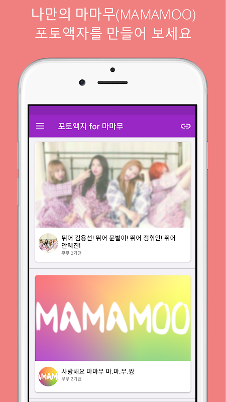단 몇 번의 터치만으로 마마무 포토카드를 만들어 드립니다.