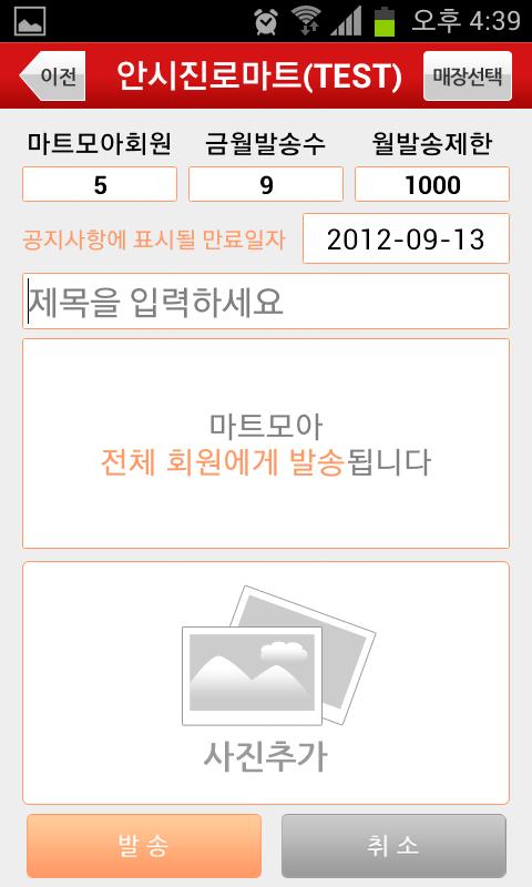 사진과 홍보내용을 입력하여 고객에게 바로 전송할 수 있습니다.