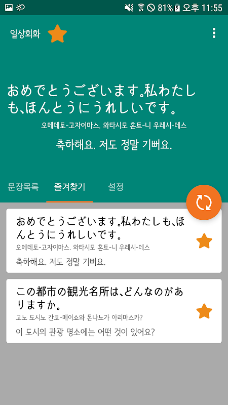 Uma frase por dia para alarme / Ouça frases TTS / Favoritos de frases, etc.
