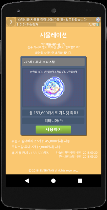 7. 본섭 확률과 동일한 루나 크리스탈(자석펫) 시뮬레이션.