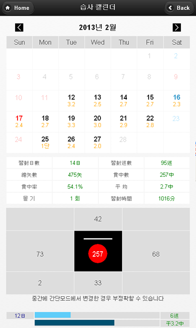 - 습사일지를 통해 본인의 활쏘기에 대해서 반구저기를 할 수 있습니다.