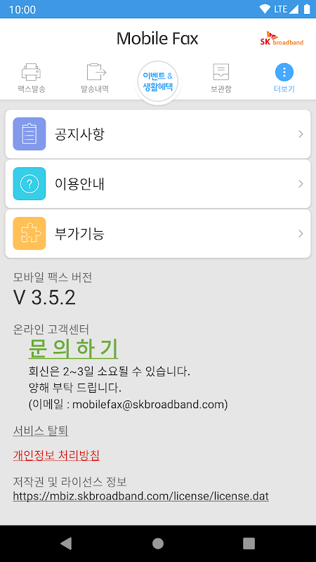 모바일팩스(발신전용) 3.7.9.5364