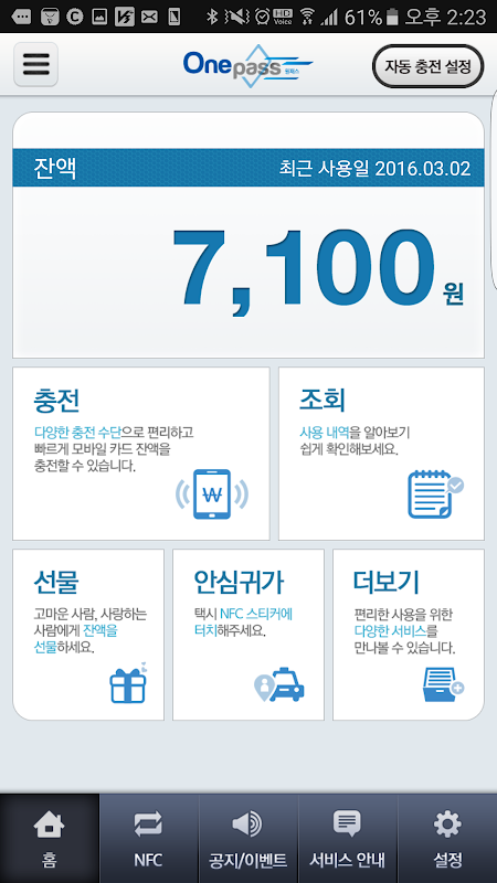 - 대구, 경북(일부)의 버스, 지하철, 유료도로, 택시 등에서 지불처리 가능