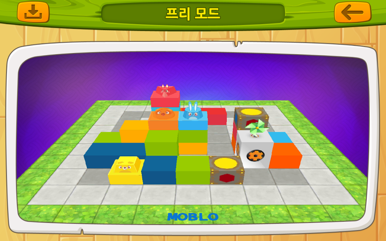 태블릿PC에 주어진 입체 모형을 디지털 블럭인 모블로로 그대로 만들어내는 새로운 형태의 블록 게임입니다.