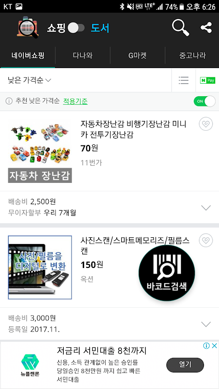 바코드로 온라인 가격 비교 - 다스캔(바코드, QR) 4.1