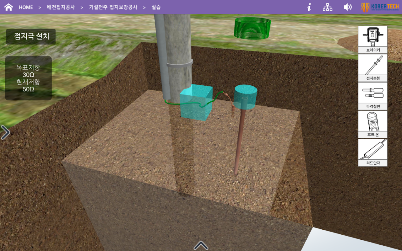 배전 접지 시공을 위한 접지 개요 및 접지 시공 자재,배전 접지 시공 설계 방법과 접지 공사를 위한 가상훈련 제공