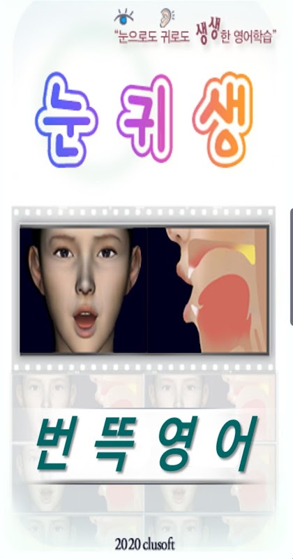 학습이 시작되면 각 단어별로 원어민 음성과 발음기관 애니메이션이 제시됩니다.
