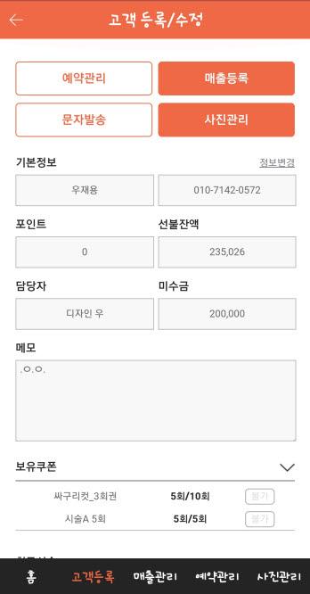 Tire uma foto com seu smartphone após o procedimento no salão de beleza, na loja de unhas, etc. As informações e fotos do cliente são gerenciadas como uma só.