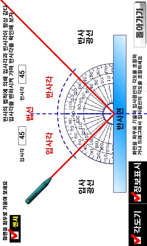 - 빛의 반사 실험 : 빛의 반사 실험시 실제 거울에 반사되는 빛의 경로를 눈으로 보기 어렵고 각도를 측정하기 어려우나, 가상실험을 이용하면 빛의 경로를 쉽게 볼 수 있고, 입사각과 반사각도 쉽게 알 수 있어 반사의 법칙을 쉽게 이해할 수 있음
