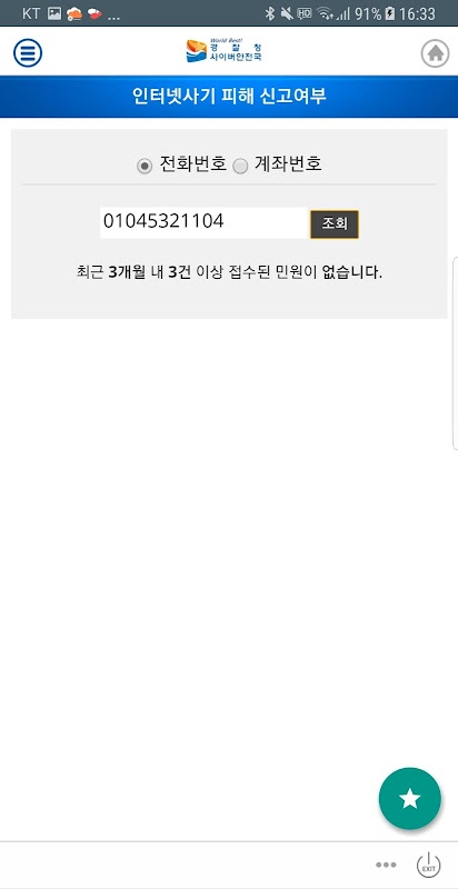 - 이 앱은 경찰청 사이버안전국에서 제공하는 조회 화면과 네이버의 사기피해조회 화면을 그대로 연결할 뿐이며 조회와 관련하여 아무런 관여가 없음을 공지합니다.