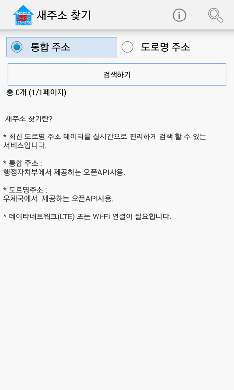새주소 (도로명 / 우편번호) 찾기 2.0