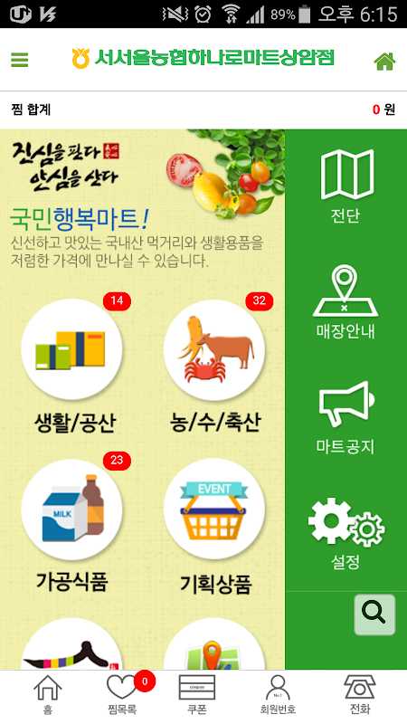 해당 서비스는 서서울농협 하나로마트 상암점의 상품 안내 및 할인정보를 실시간으로 고객에게 전달해 주는