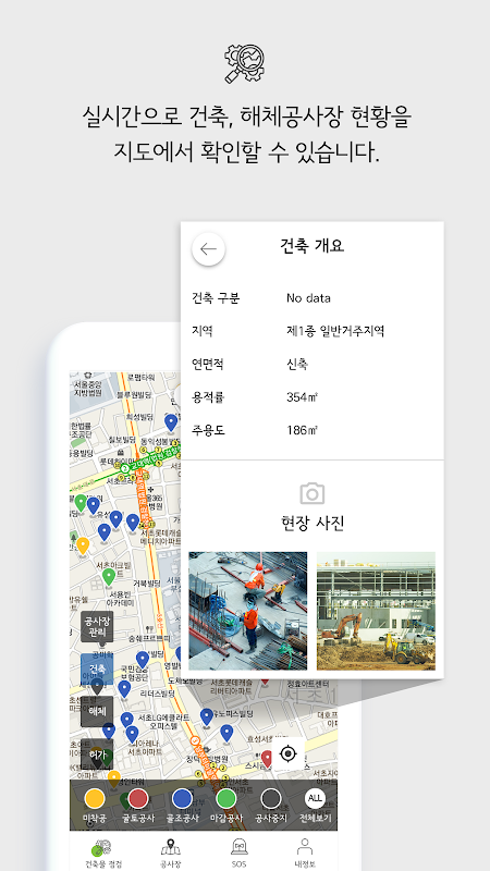 Fornece informações em tempo real sobre o status dos canteiros de obras em Seocho-gu e a inspeção de segurança dos edifícios existentes.