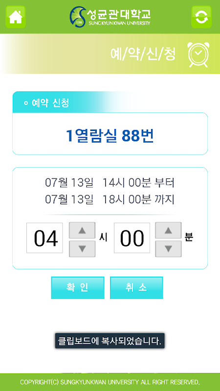 성균관대 공대 1,2,3열람실의 좌석 배정을 위한 앱이며 사용법은 아래와 같습니다.
