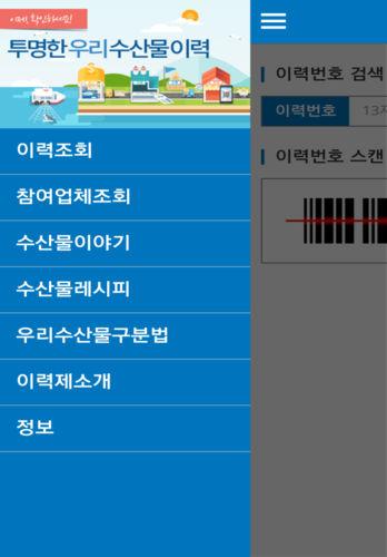해양수산부에서 제작한 수산물이력조회 어플리케이션입니다.
