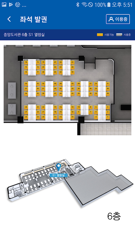 Sookmyung Women's University Central Library é uma aplicação que pode ser atribuída à atribuição de assentos sala de leitura e sala de estudo.