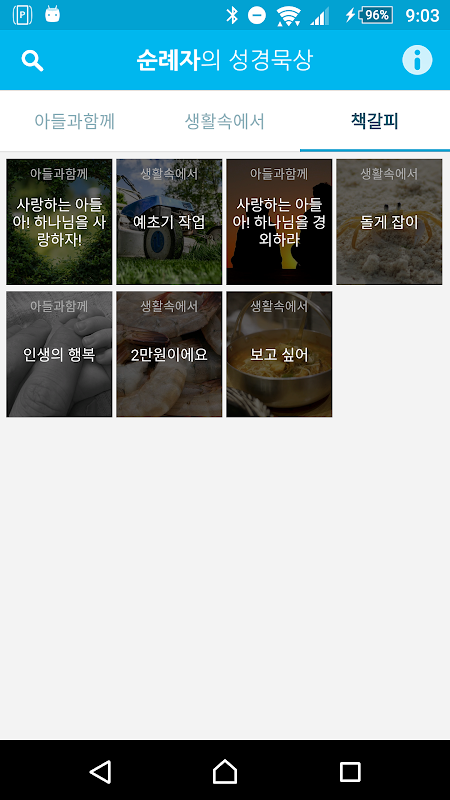 - 생활속에서(작성자의 실생활 속에서 벌어지는 에피소드를 바탕으로 연관되는 성경 말씀을 묵상)
