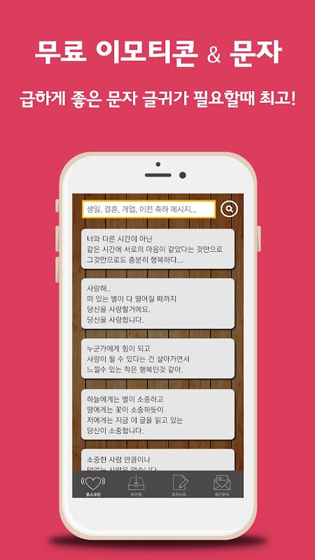 천여개의 모든 상황별 문자가 정리되어 있어 말주변 없거나