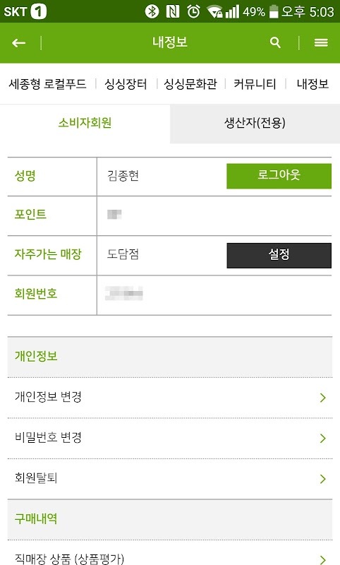 Informações sobre 싱싱장터 (세종시 로컬푸드 직매장) APK