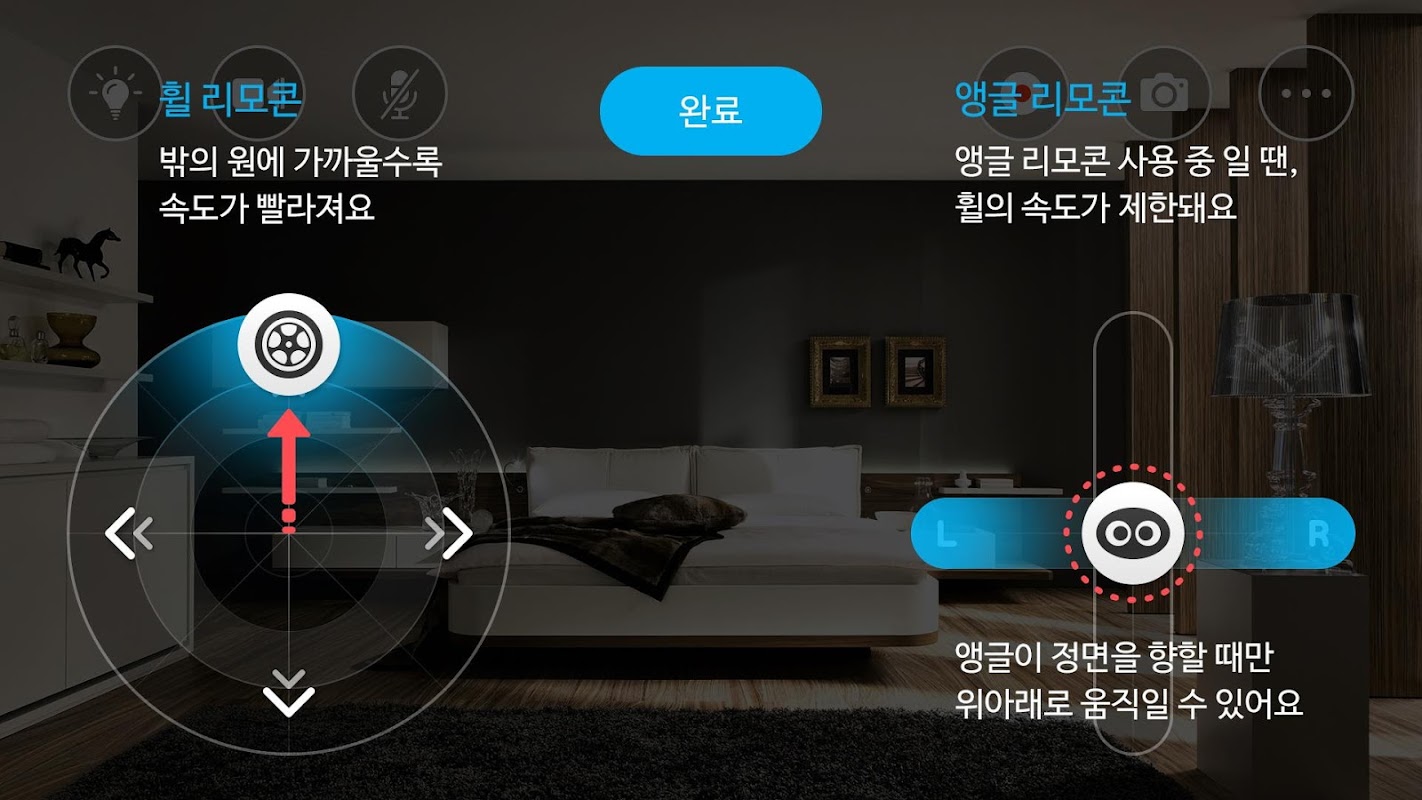 모니터링 중에 사진찍기, 녹화, 음악 재생, 영상 통화, 로봇 모션 제어 및 가전제어 등 로봇에서 동작되는 모든 기능을 동시에 수행할 수 있어 사용자가 마치 집안에서 로봇을 제어하는 듯한 느낌을 받으실 수 있습니다.