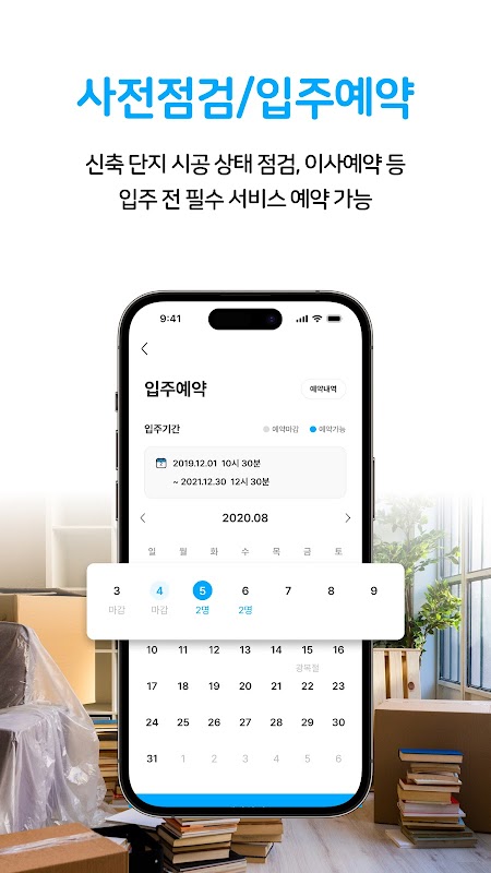 Inspeção do status de construção de novos apartamentos, data de mudança, etc.
