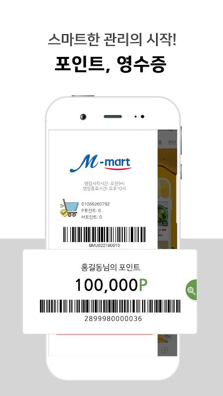 -Você pode usar convenientemente o cartão de ponto da filial M-Mart Gwangwoondae no celular e verificar os pontos a qualquer hora, em qualquer lugar.