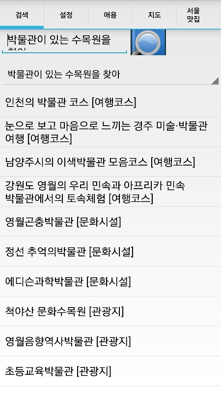 설정을 서울과 맛집으로 하고, 전라도, 경상도, 충청도, 강원도을 검색하면, 주말동안 다양한 음식을 다 맛 볼 수도 있다.