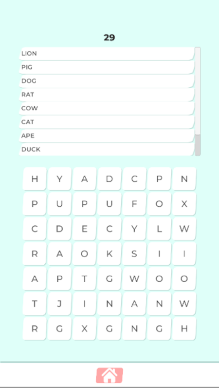 제시되는 영어 단어를 알파벳 그리드 속에서 찾아 보세요.