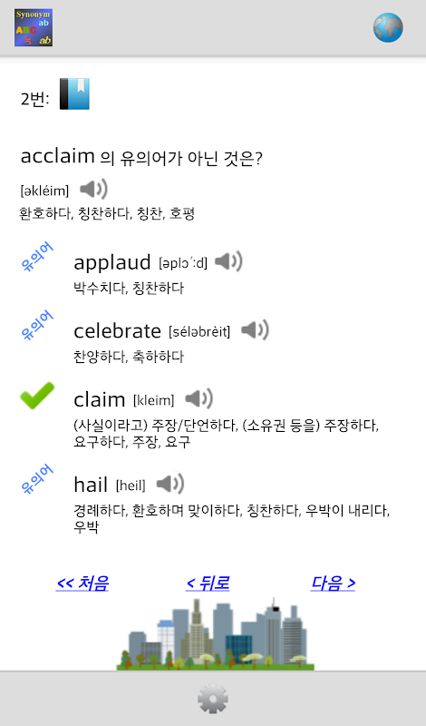 정답을 맞추면 박수소리가 나옵니다. (효과음은 소거할 수도 있습니다.)