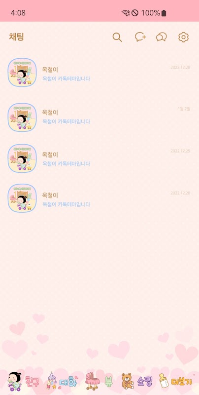 테마 적용하기 버튼을 누르시면 카카오톡 테마가 적용됩니다