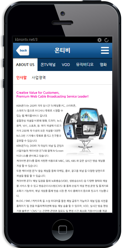 KBN온TV는 실시간 TV채널을 PC, 스마트폰, 스마트TV 등으로 어디서나 무료로 고화질 방송을 시청할 수 있는 웹 케이블TV 입니다.