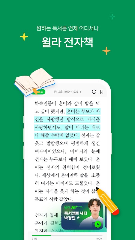 Acesso ilimitado a mais de 220.000 títulos de leitura, desde os maiores audiolivros da Coreia até e-books, livros digitais e romances online!