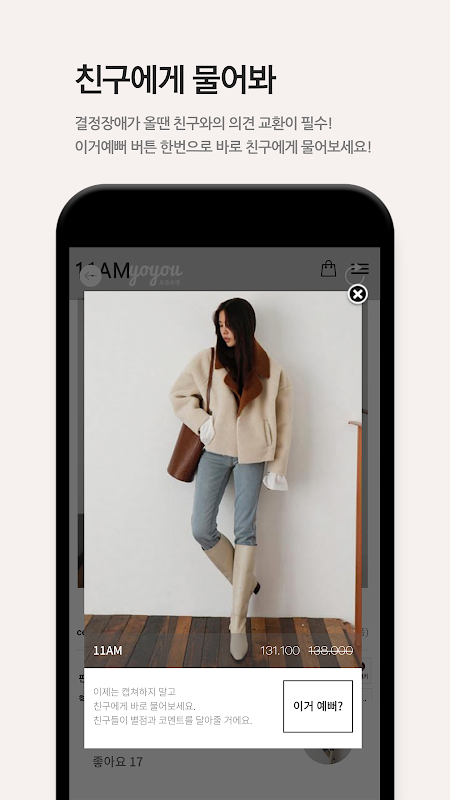 4) 막상 옷이 예뻐보이기는 하는데, 친구들의 의견도 들어야 겠죠? - 이거 어때?
