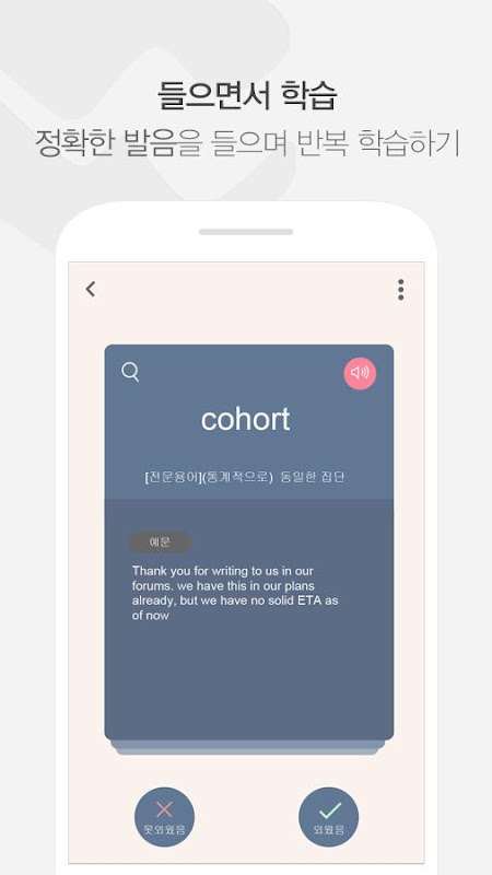 As palavras aprendidas podem ser aprendidas repetindo-se após a classificação, deslizando as palavras esquerda e direita que requerem mais palavras de aprendizado e terminadas