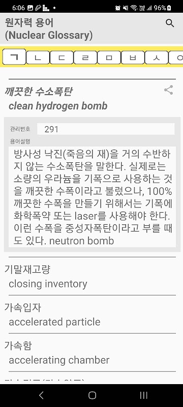 Um glossário criado usando dados públicos fornecidos pela Korea Hydro & Nuclear Power Co., Ltd., off-line, pesquisável e classificado em ordem alfabética.