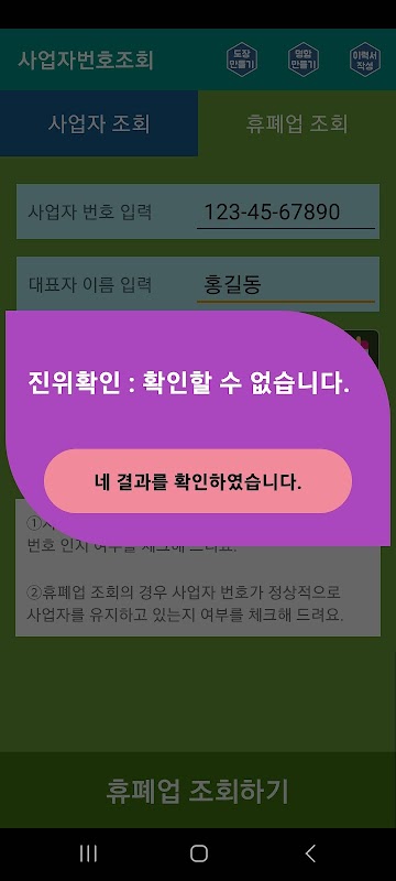 Informações sobre 사업자등록번호조회 사업자번호조회 휴폐업조회 APK