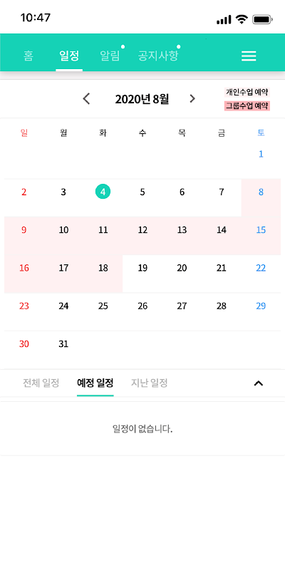 이너라인 필라테스 회원님들을 위한 예약 시스템입니다.