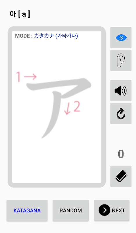 - Você pode aprender aleatoriamente Hiragana / Katakana.