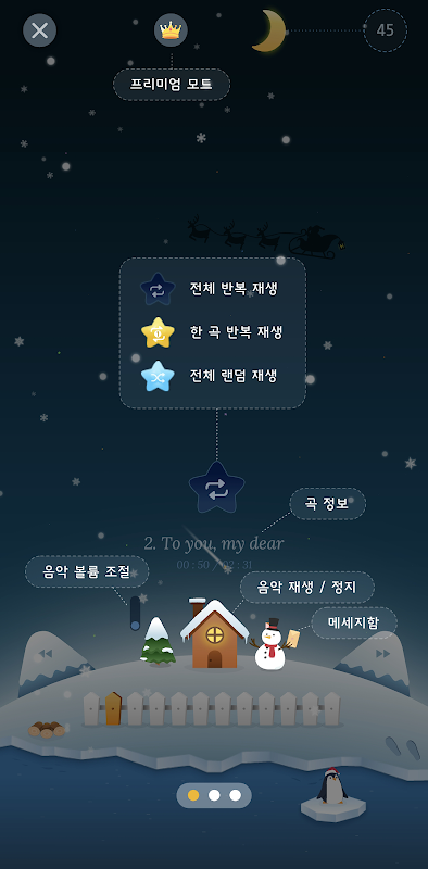 - Neve caindo no céu noturno, Papai Noel e várias funções de toque de animais adicionadas