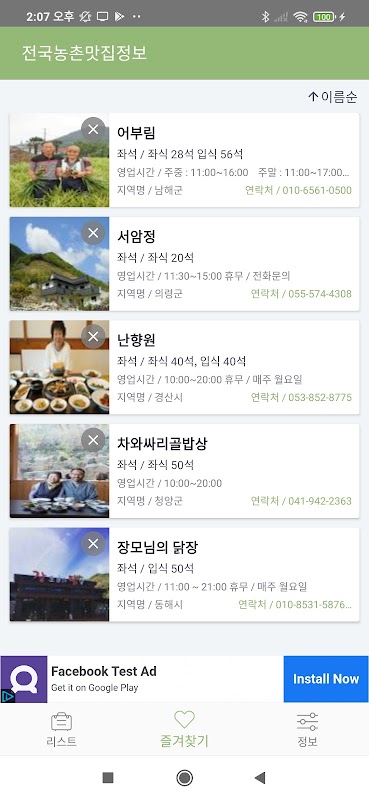 전국 농촌 맛집 - 농촌 맛집 위치 정보 제공 1.0